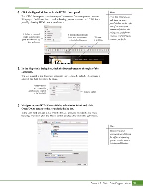 4. Click the Hyperlink button in the HTML Insert panel. Note: