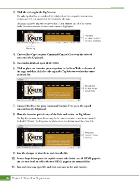 Clicking a tag in the Tag Selector selects that HTML element and all of its content.