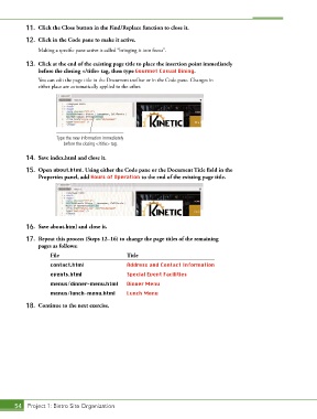 15. Open about.html. Using either the Code pane or the Document Title field in the