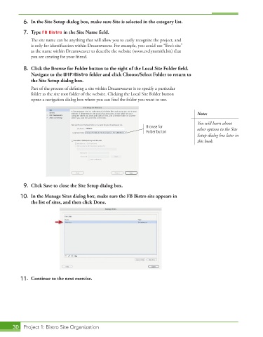 10. In the Manage Sites dialog box, make sure the FB Bistro site appears in