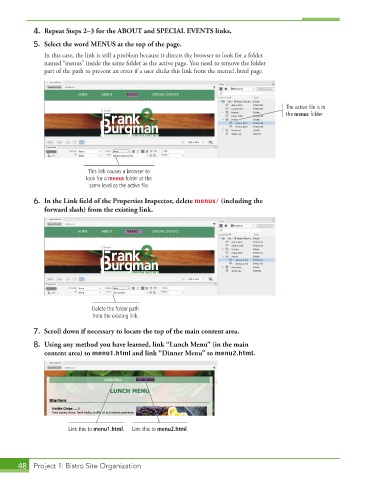 content area) to menu1.html and link “Dinner Menu” to menu2.html.