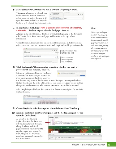 7. In the Replace fi eld, type Frank & Burgman Fresh Bistro | Lancaster, Note: