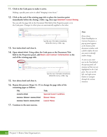 14. Open about.html. Using either the Code pane or the Document Title you want to identify