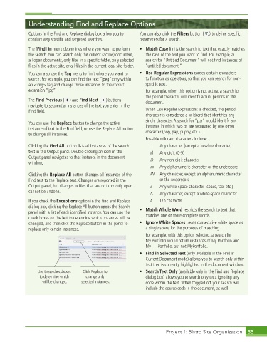 panel with a list of each identifi ed instance. You can use the • Match Whole Word restricts the search to text that