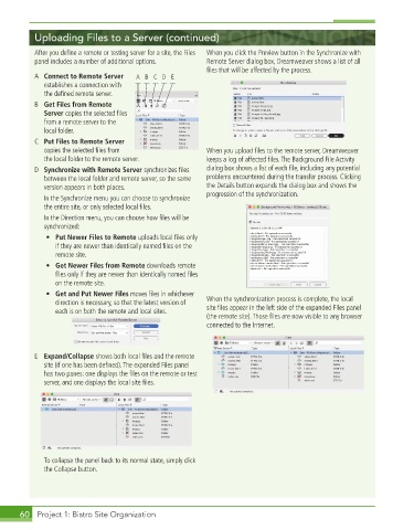 After you defi ne a remote or testing server for a site, the Files When you click the Preview button in the Synchronize with