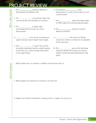 short answer 1. Briefl y explain why it is important to defi ne a Dreamweaver site fi le.