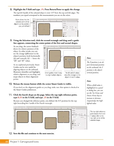 Illustrator identifies and highlights Smart guides make it easy The dX and dY values vertical position.