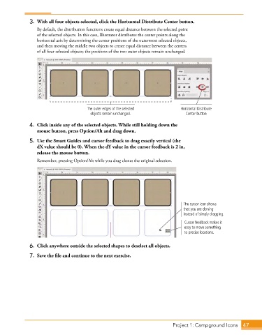 of the selected objects. In this case, Illustrator distributes the center points along the