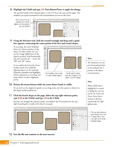 Illustrator identifies and highlights Smart guides make it easy The dX and dY values vertical position.