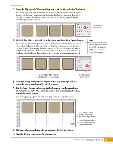 of the selected objects. In this case, Illustrator distributes the center points along the itor width, Align options