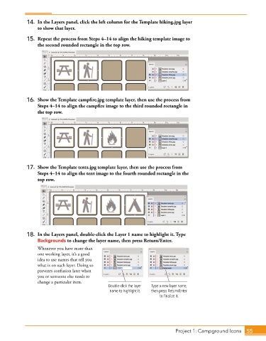 Steps 4–14 to align the campfire image to the third rounded rectangle in