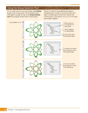 You can create more than one level of group, called nesting, The first click with the Group Selection tool selects an