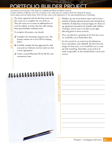 Carefully read the art director and client comments, then create your own design to meet the needs of the project.