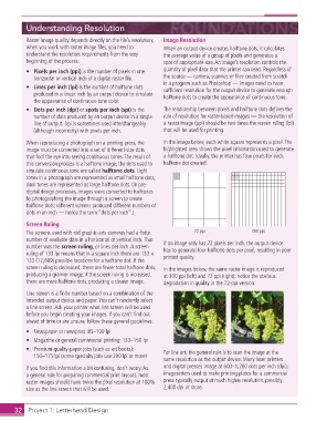 when you work with raster image fi les, you need to When an output device creates halftone dots, it calculates