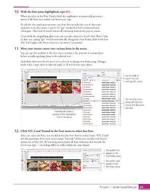 11. Move your mouse cursor over various fonts in the menu.