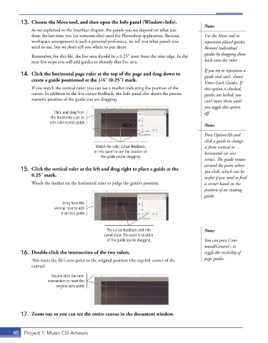 14. Click the horizontal page ruler at the top of the page and drag down to guide and can’t, choose