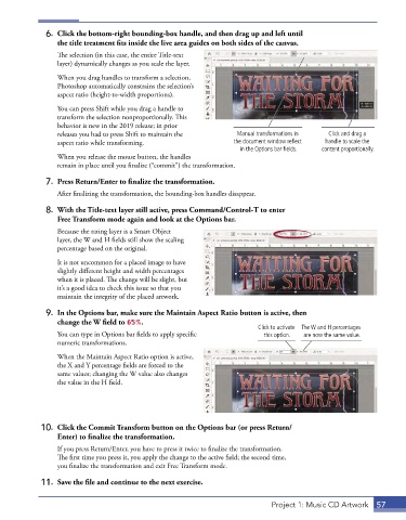 aspect ratio while transforming. the document window reflect handle to scale the