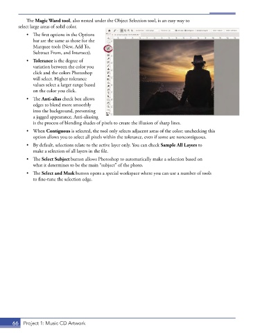 • When Contiguous is selected, the tool only selects adjacent areas of the color; unchecking this