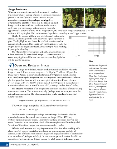 appearance of continuous tone. In the images above, the same raster image is reproduced at 72 ppi