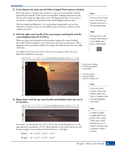 3. Click the right-center handle of the crop marquee and drag left until the You can rotate a crop