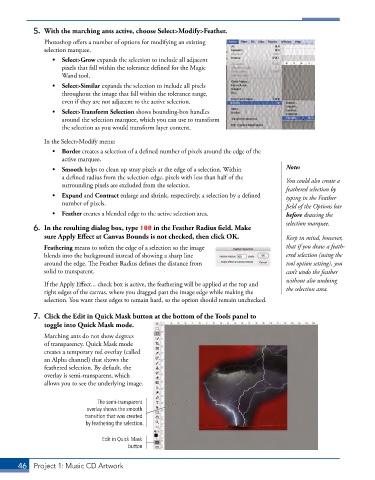 • Feather creates a blended edge to the active selection area. before drawing the