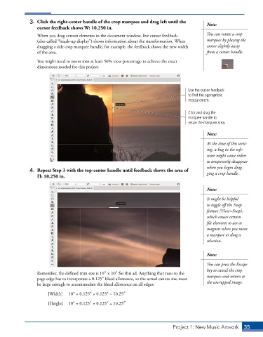 3. Click the right-center handle of the crop marquee and drag left until the Note:
