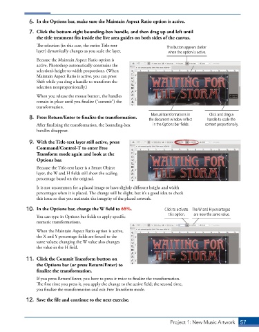 10. In the Options bar, change the W field to 65%. Click to activate The W and H percentages