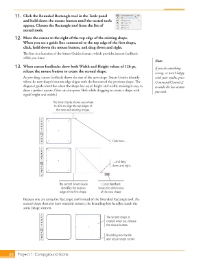 As you drag, cursor feedback shows the size of the new shape. Smart Guides identify with your results, press