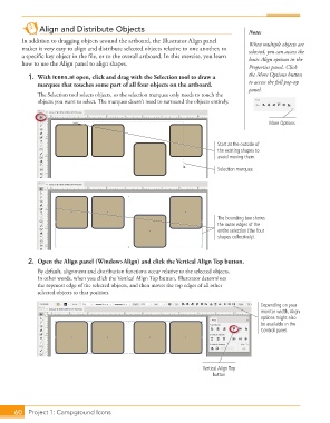 a specifi c key object in the fi le, or to the overall artboard. In this exercise, you learn basic Align options in the