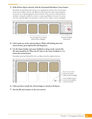 of the selected objects. In this case, Illustrator distributes the center points along the