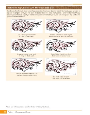 object by dragging any handle, and even rotate an object by placing the cursor directly outside a corner handle. If Smart Guides