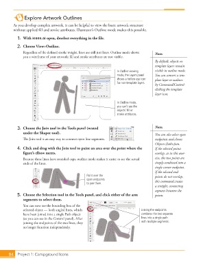 Regardless of the defi ned stroke weight, lines are still just lines. Outline mode shows Note: