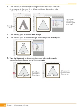 6. Click and drag again to draw two straight lines that represent the tent poles.