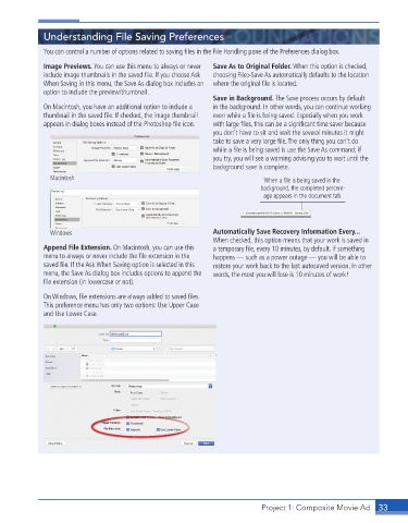 You can control a number of options related to saving fi les in the File Handling pane of the Preferences dialog box.