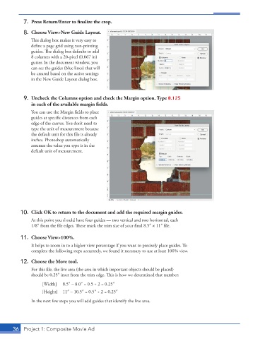 9. Uncheck the Columns option and check the Margin option. Type 0.125