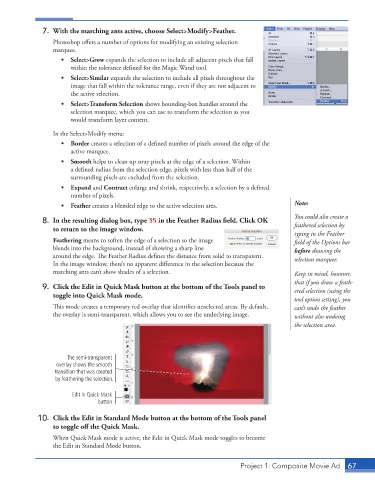 around the edge. The Feather Radius defines the distance from solid to transparent. selection marquee.