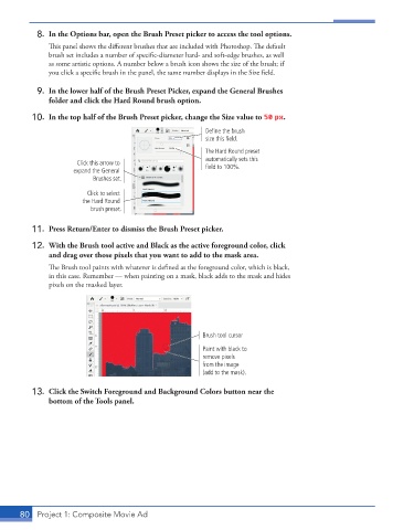 8. In the Options bar, open the Brush Preset picker to access the tool options.