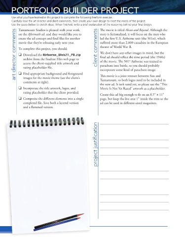 Carefully read the art director and client comments, then create your own design to meet the needs of the project.