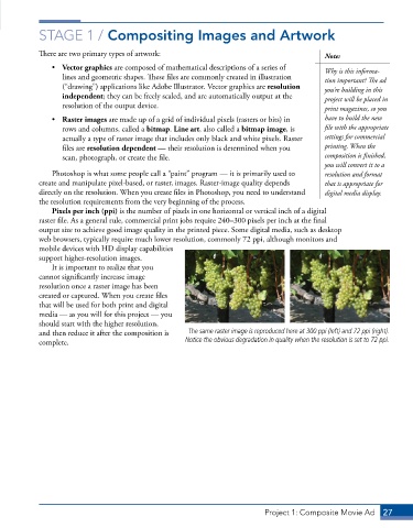 and then reduce it after the composition is The same raster image is reproduced here at 300 ppi (left) and 72 ppi (right).