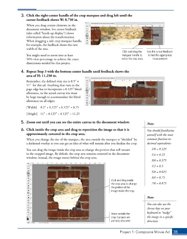 3. Click the right-center handle of the crop marquee and drag left until the