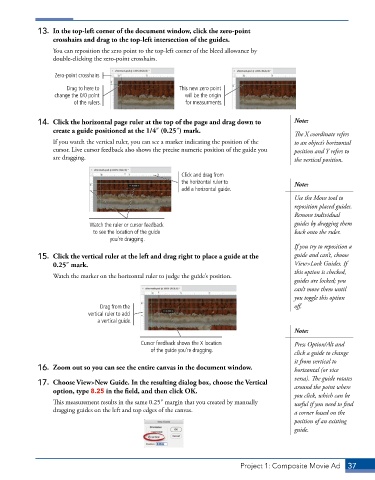 14. Click the horizontal page ruler at the top of the page and drag down to Note: