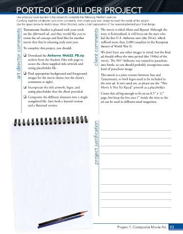 Carefully read the art director and client comments, then create your own design to meet the needs of the project.